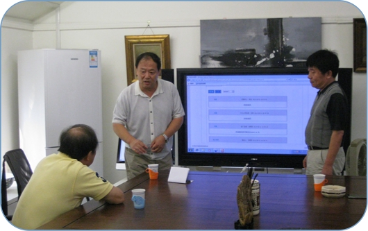 圖1 劉總、李總均向白(bái)秘書(shū)長(cháng↑λ )對(duì)我公司管理(lǐ)平台進行(xíng)Ω€®展示說(shuō)明(míng)