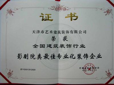 全國(guó)建築裝飾行(xíng)業(yè)影(yǐng)劇(jù)院類最佳π∏ 專業(yè)化(huà)裝飾企業(yè)